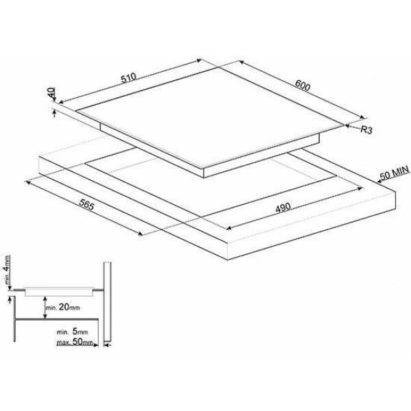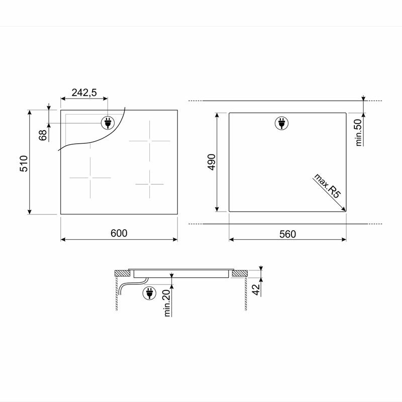 Встраиваемая электрическая панель SMEG/ Электрическая, Cтеклокерамическая варочная панель, 60 см, прямой край