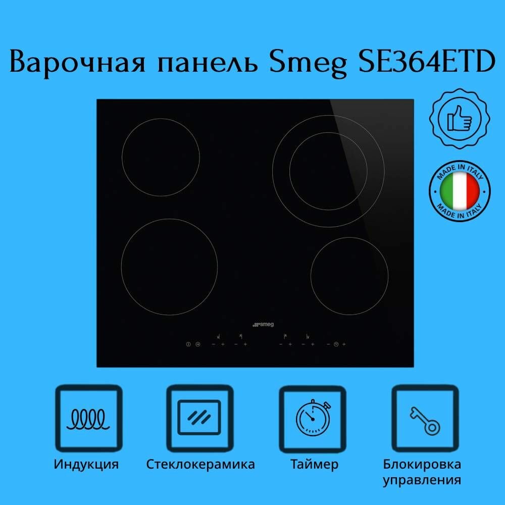 Стеклокерамическая варочная панель Smeg SE364ETD, черное стекло, 60 см, 4 зоны нагрева Hi-Light, блокировка управления