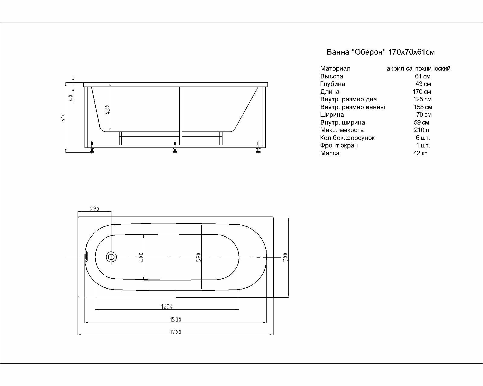 Акриловая ванна Aquatek Оберон 170x70 OBR170-0000049 слив справа, с фронтальным экраном, без гидромассажа, сборно-разборный сварной каркас интересное: