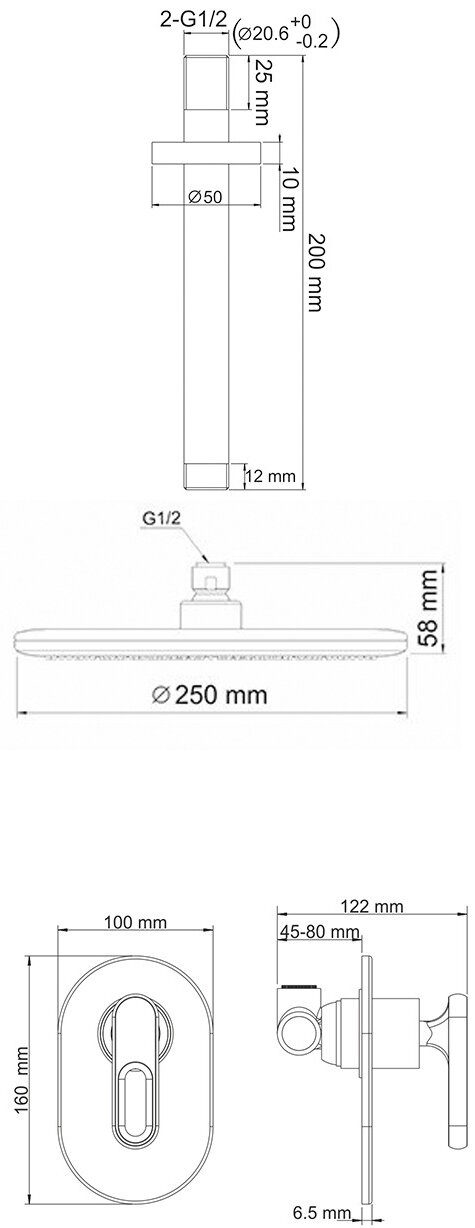 | Дополнительная информация | диаметр верхнего душа: 250 мм |