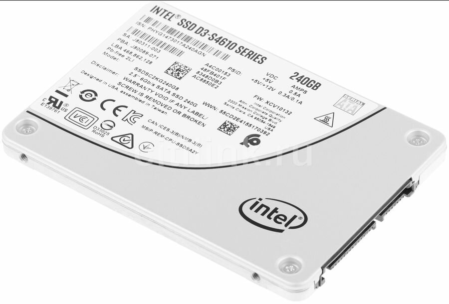 Накопитель SSD Intel D3-S4610 SSDSC2KG240G801/SATA III/240GB /Скорость чтения 560МБайт/с Скорость записи 320МБайт/с
