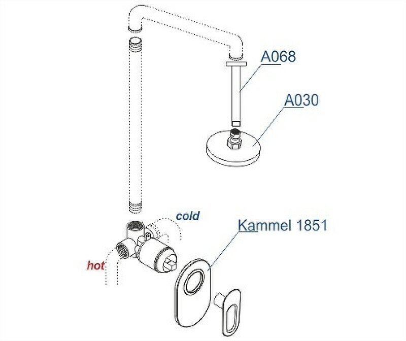 A12830 Встраиваемый комплект для душа с верхней душевой насадкой