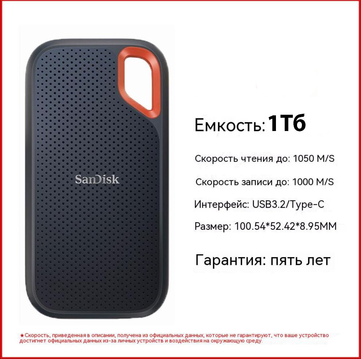 1 ТБ Внешний SSD SanDisk Extreme Portable V2, USB 3.2 Gen 2, черный SDSSDE61-1TOO-AW25 интересное: