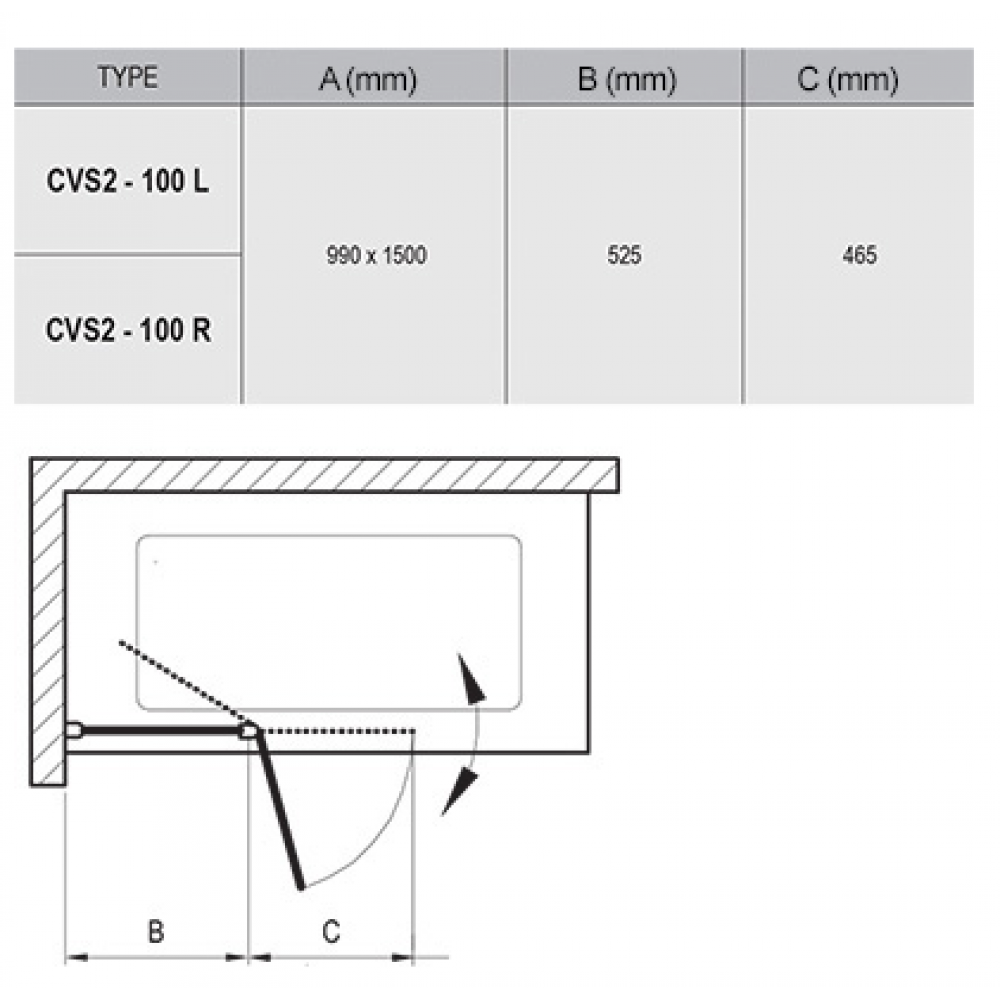Шторка для ванной CVS2-100 L блестящий+стекло Transparent