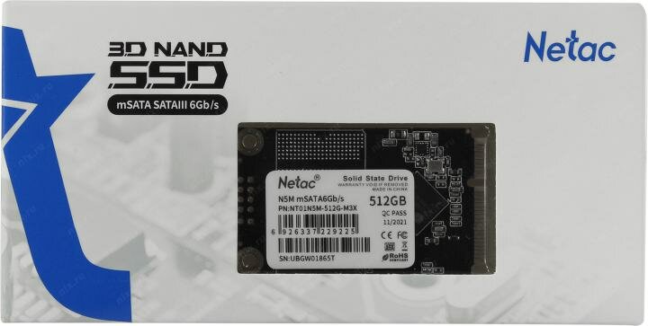 SSD диск NETAC M.2 mSATA N5M 512Gb SATA III 3D NAND NT01N5M-512G-M3X
