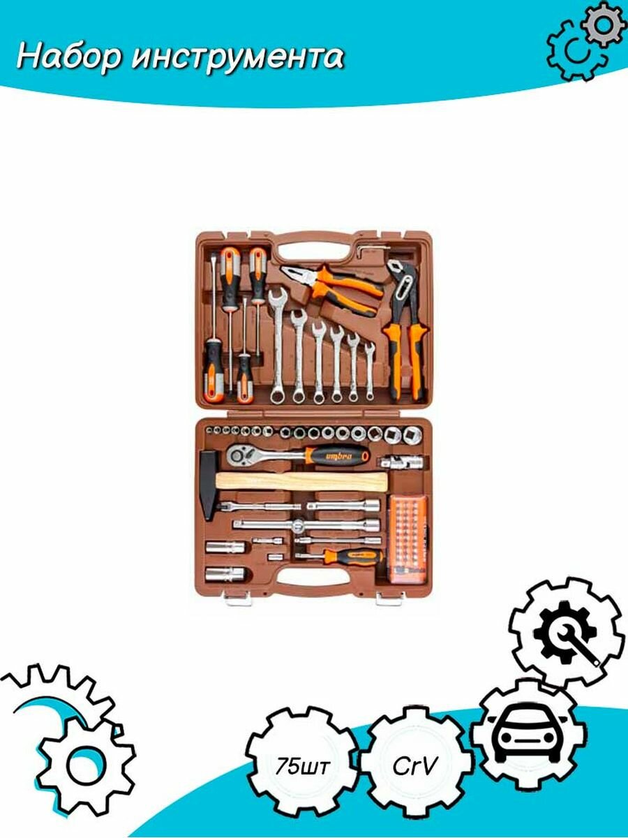 Набор слесарных инструментов Ombra, 55460/omt75s, 1/2", 1/4", кейс, 75 предметов