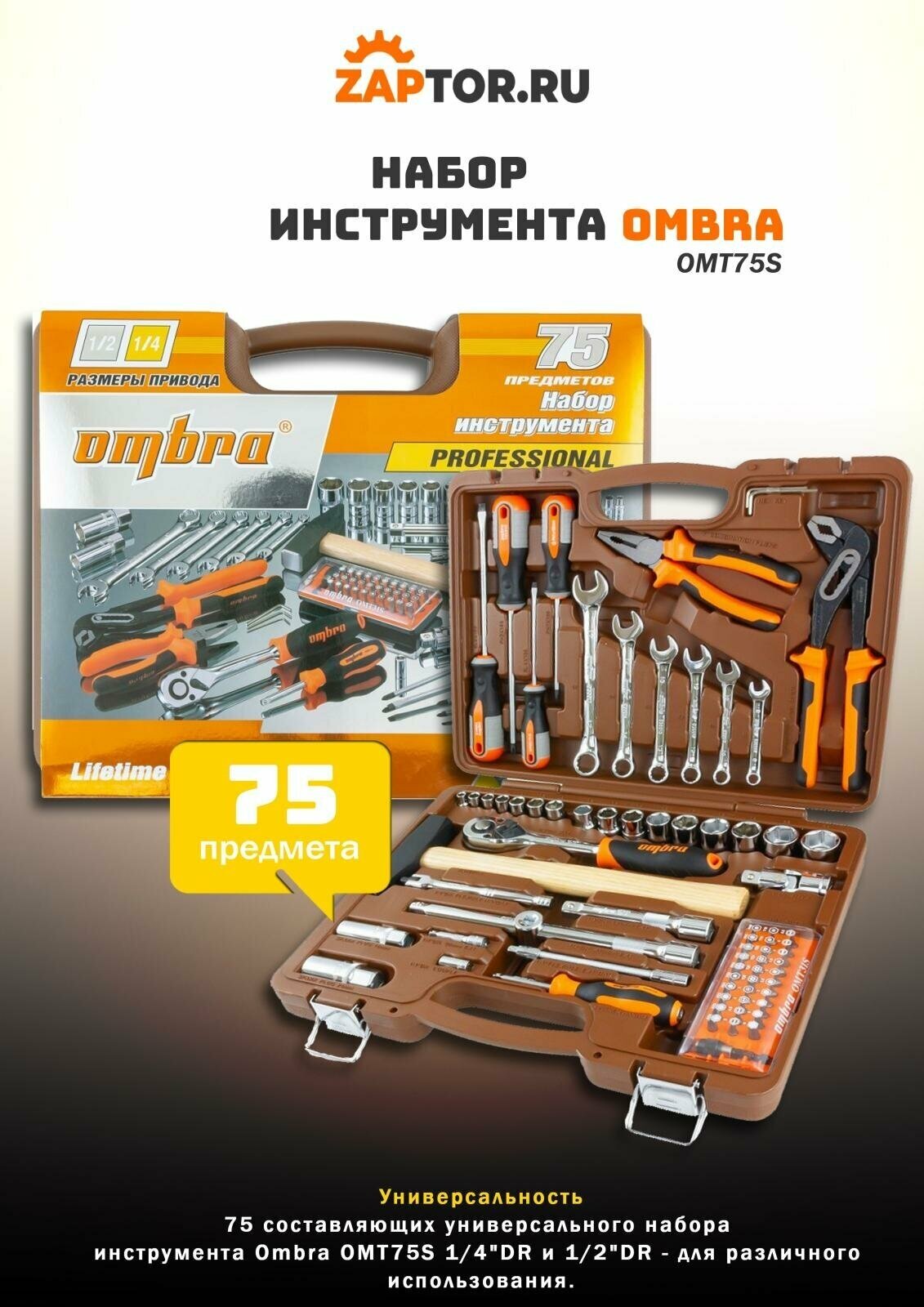 Набор инструмента универсальный 1/4", 1/2"DR, 75 предметов OMBRA / арт. OMT75S - (1 шт)