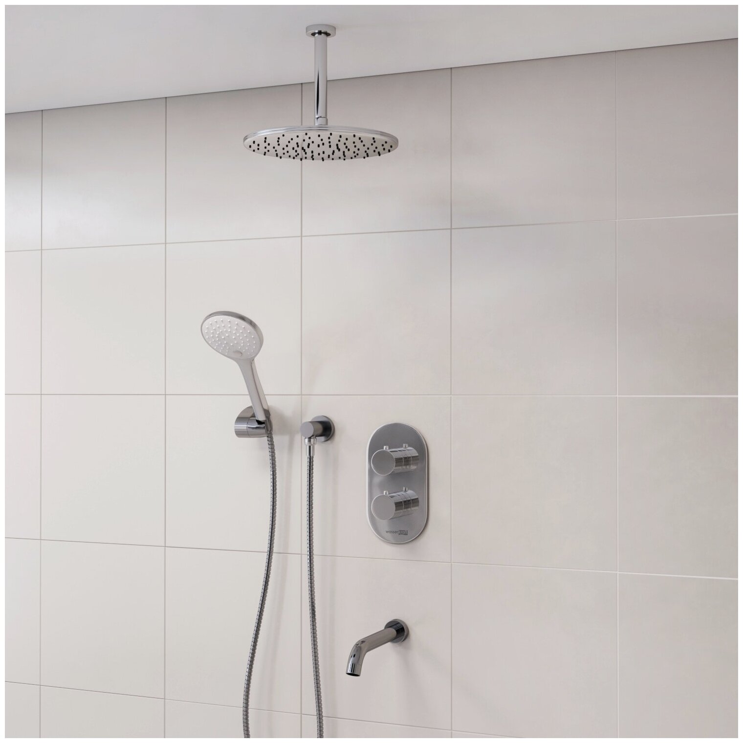 Встраиваемый комплект для ванны с верхней душевой насадкой, лейкой и изливом Wasserkraft A174868 Thermo SET1251