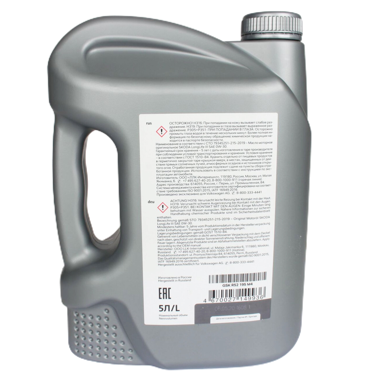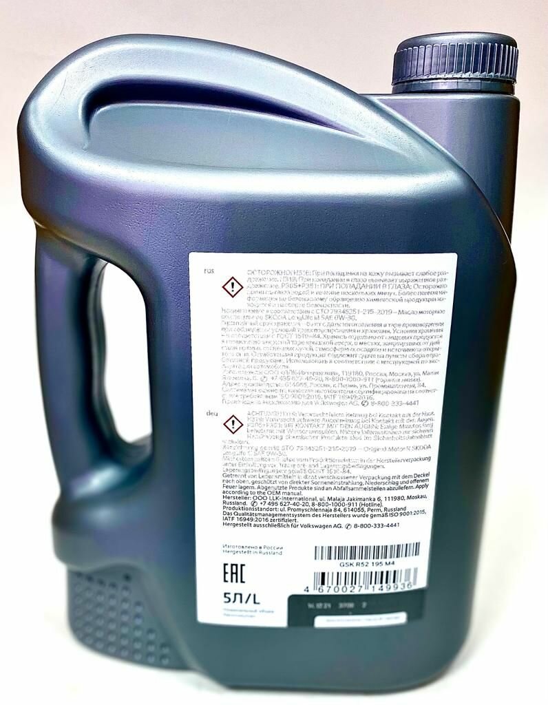 Масло моторное LongLife III Skoda 0W30 5л VAG GSK R52 195 M4