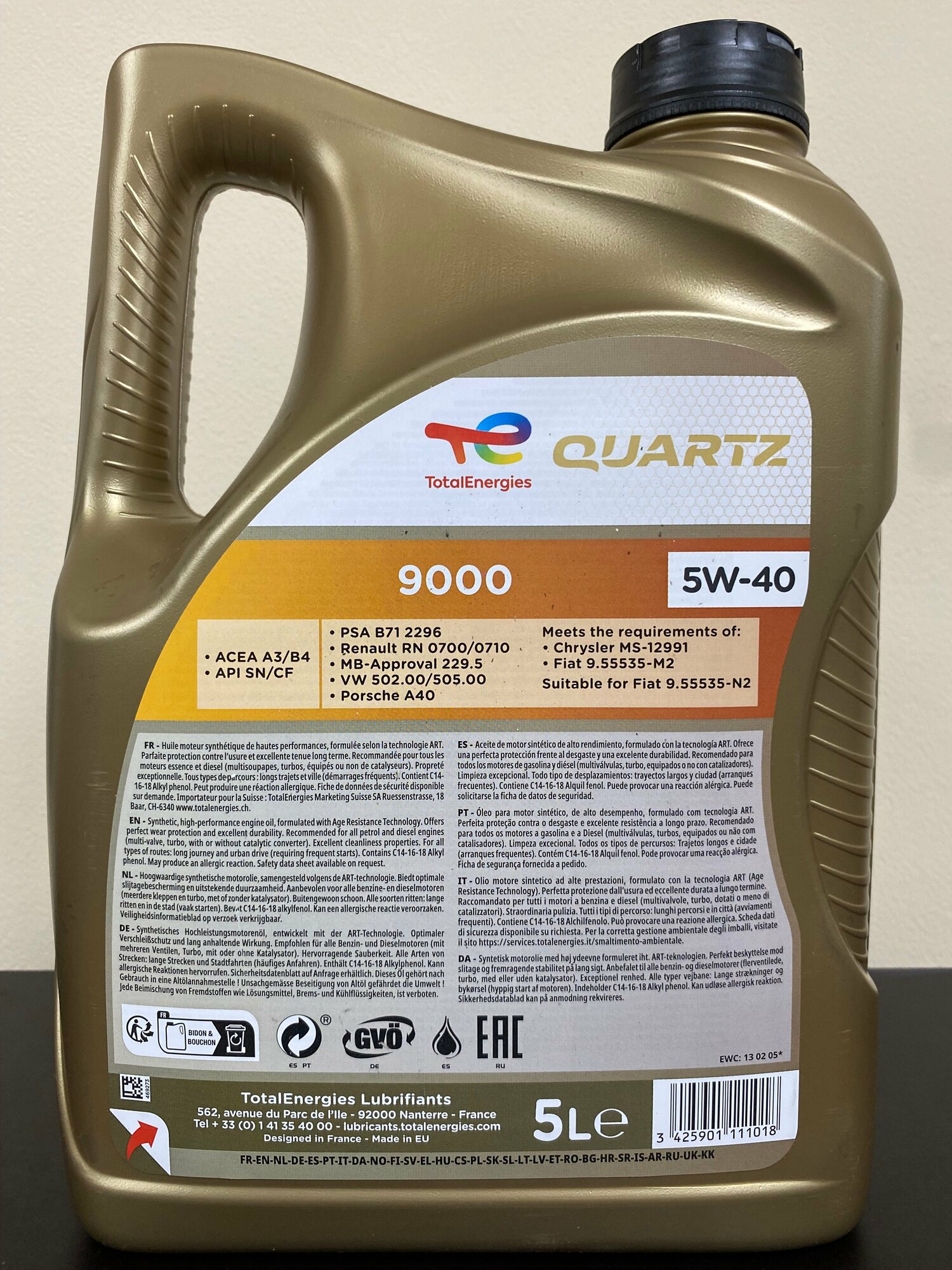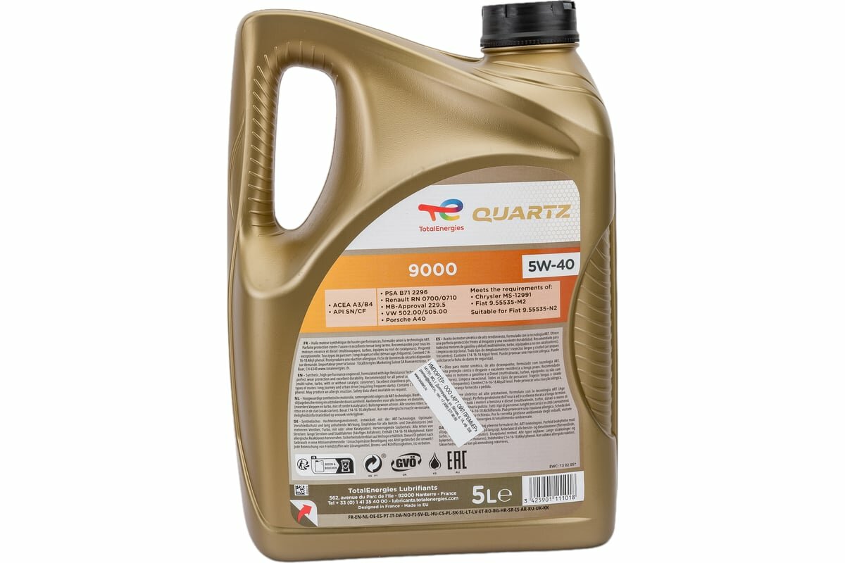 Синтетическое моторное масло TOTAL Quartz 9000 5W-40, 5 л (Европейский союз)