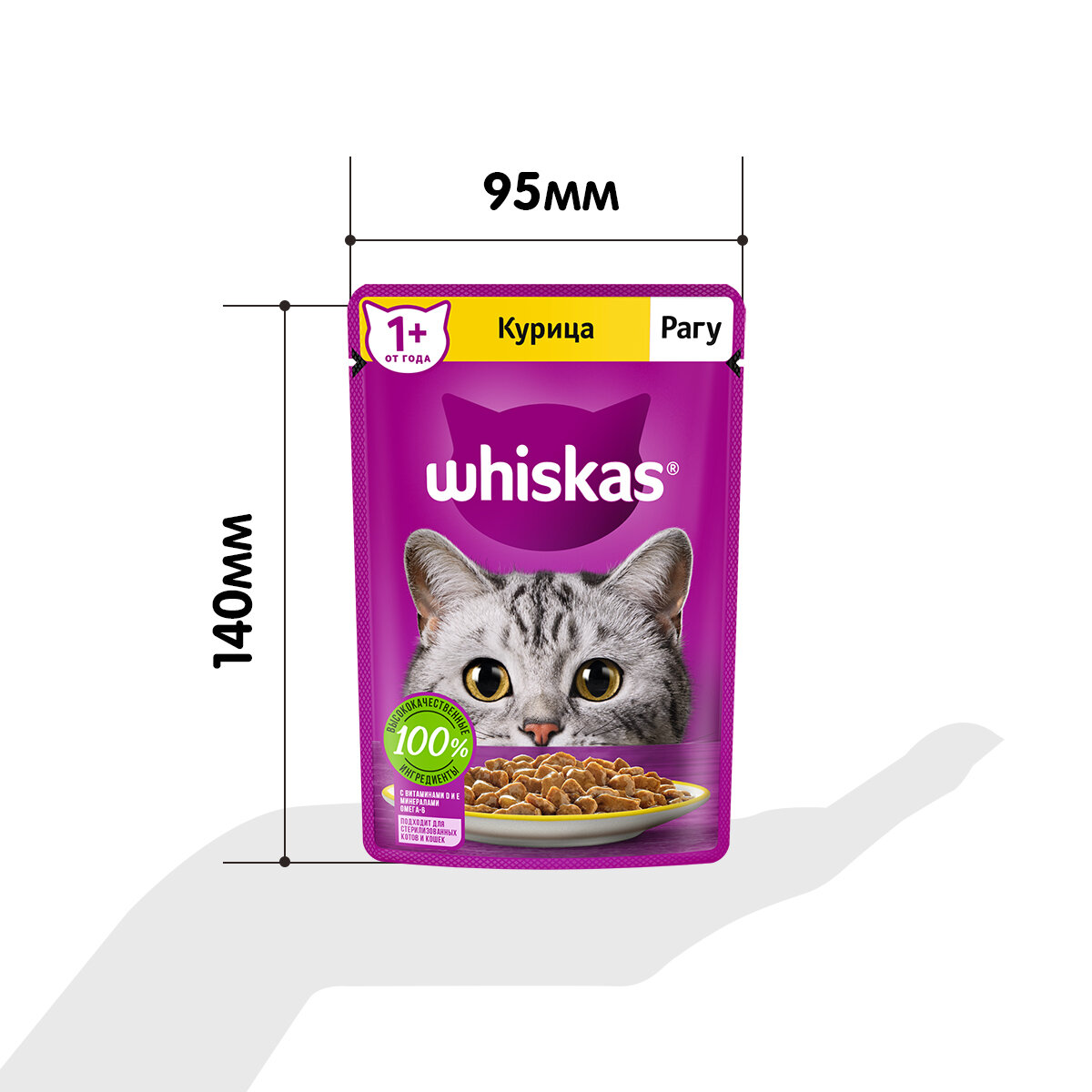 Корм влажный Whiskas полнорационный для взрослых кошек, рагу с курицей, 28шт х 75г