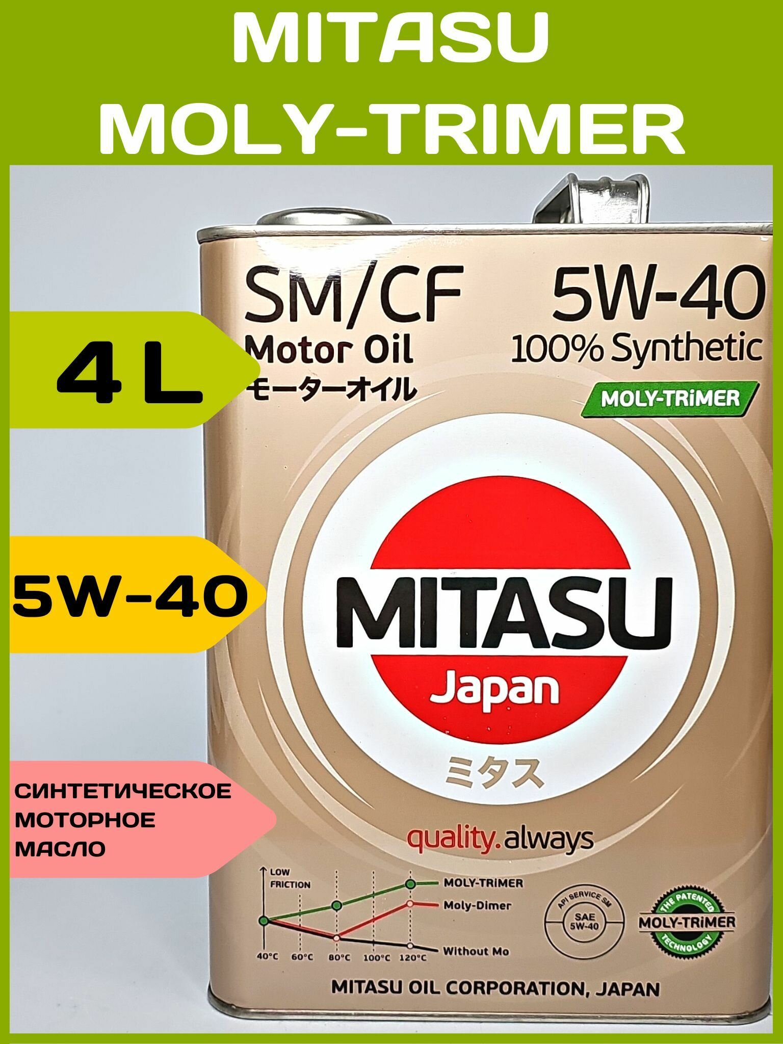 MITASU Mj-M12 Mitasu Moli-Trimer Sm 5W40 (4L) Синтетическое Мотор.масло Для Бензинз.дв.(1/6) Япония.