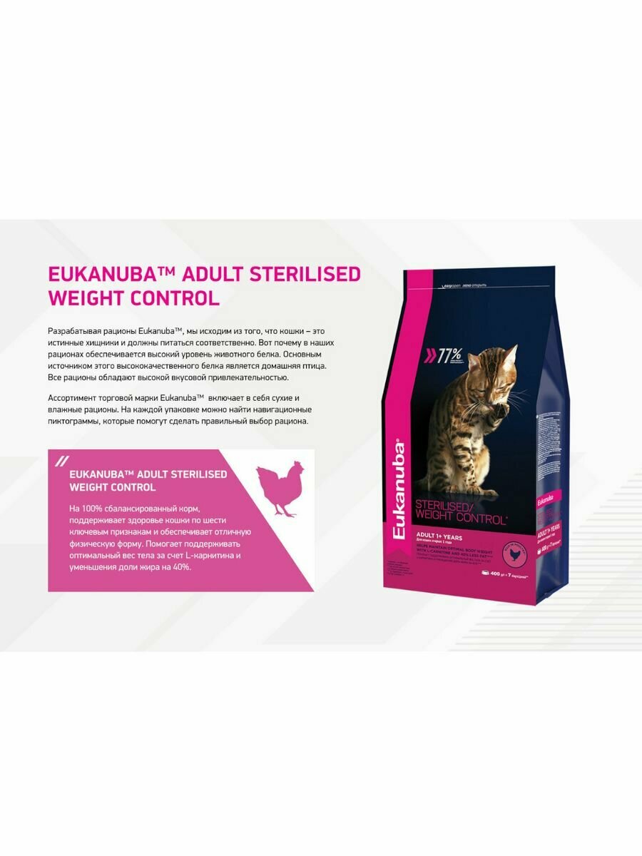 EUKANUBA CAT ADULT STERILISED/WEIGHT CONTROL диетический для взрослых кошек, кастрированных и стерилизованных кошек с птицей (0,4 кг)