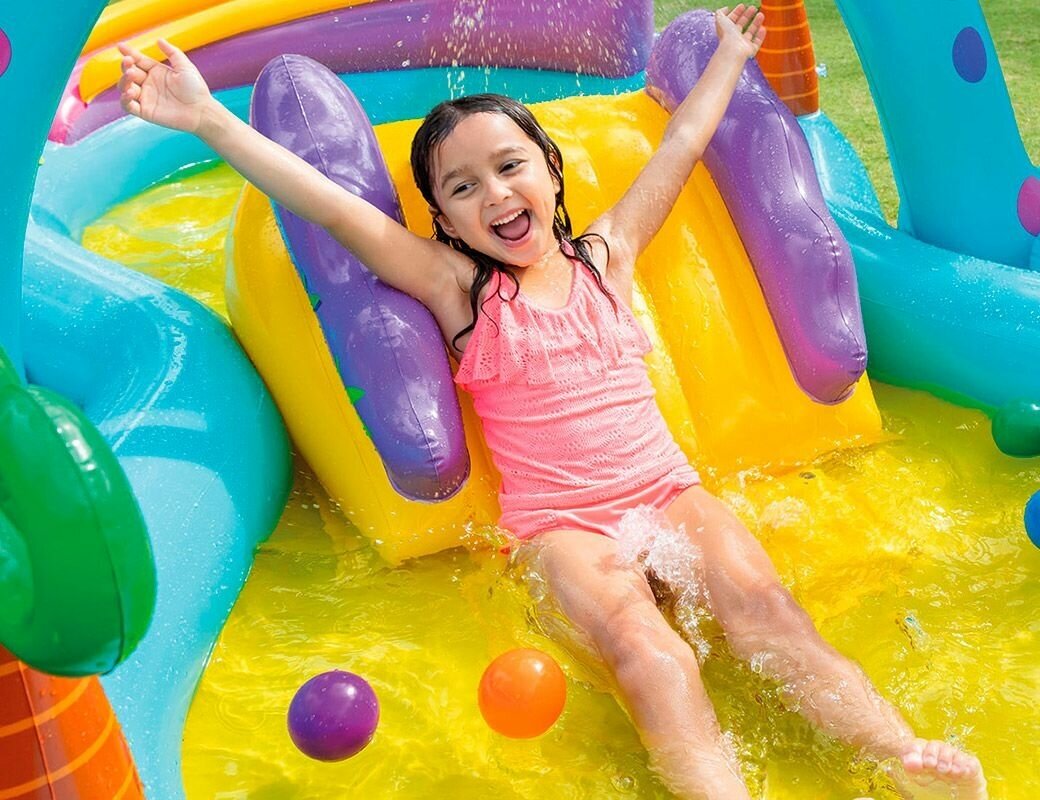 Игровой центр-бассейн Dinoland, с горкой, распылит., игрушками 302х229х112см от 2 лет