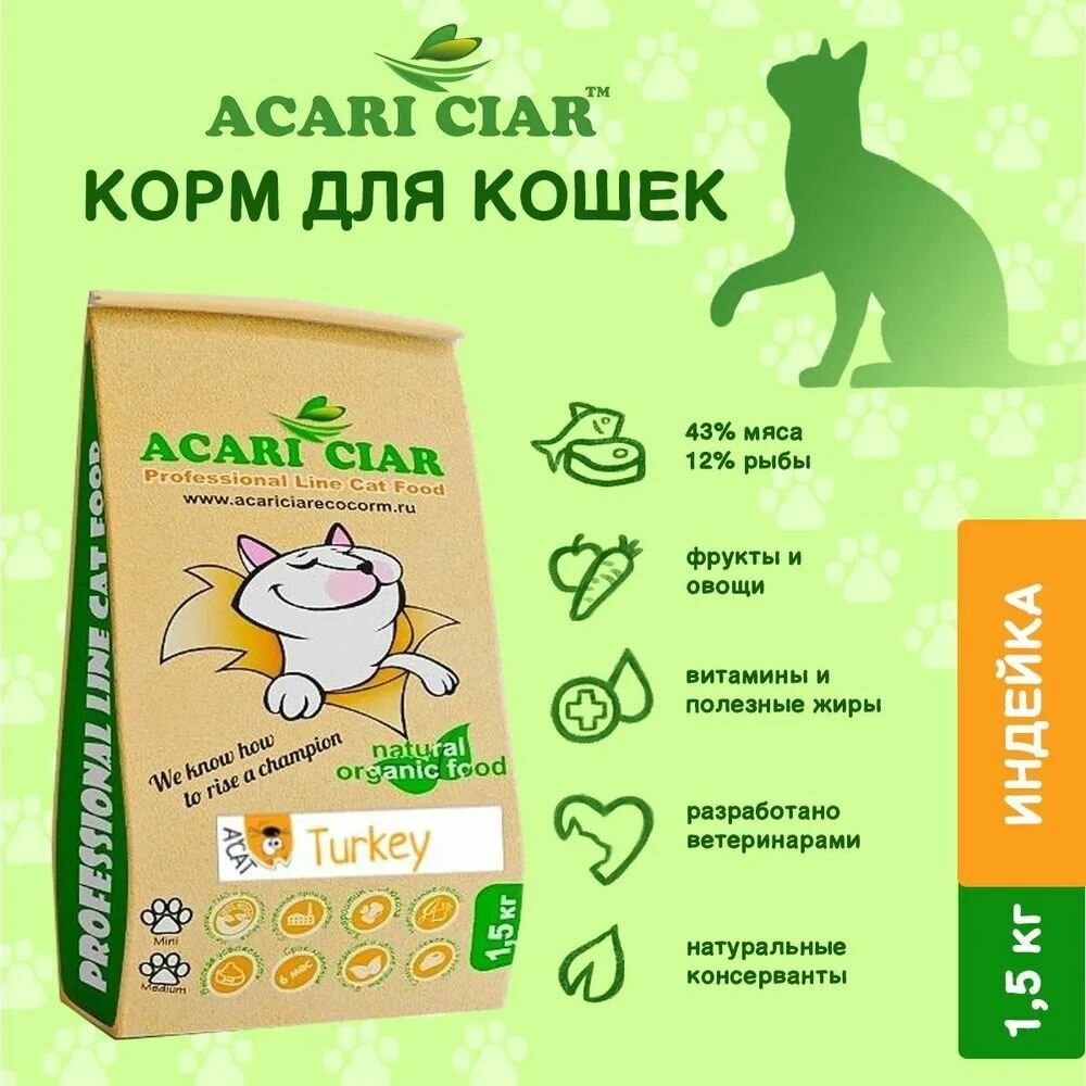 Купить Сухой корм для кошек Acari Ciar A Cat Turkey 1,5 кг (мини гранула ) Акари Киар