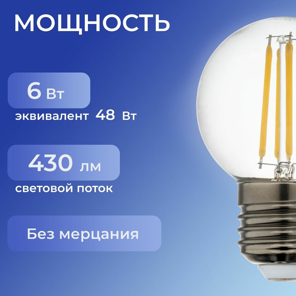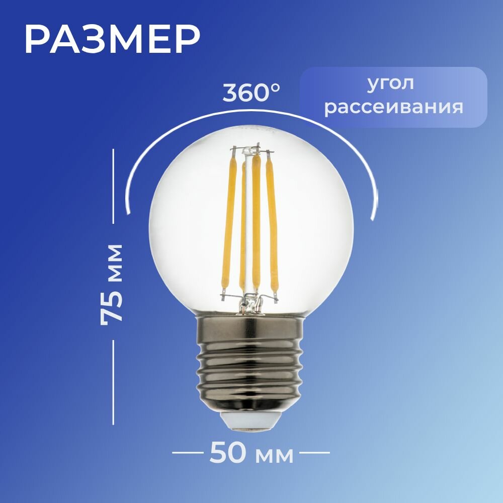 Сохранить933822 Лампа LED FILAMENT 220V G50 E27 6W=65W 400-430LM 360G CL 3000K 30000H, шт интересное: