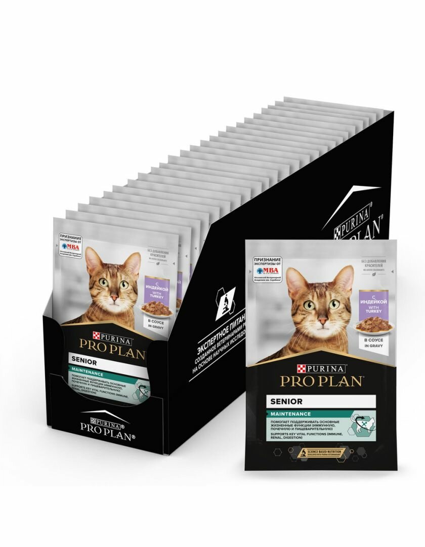 Корм для кошек PRO PLAN Senior для пожилых, с индейкой в соусе пауч 85г (упаковка - 26 шт)