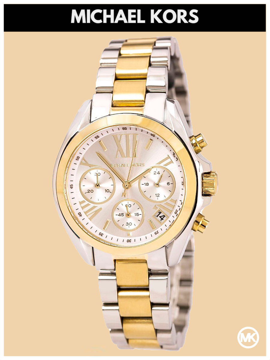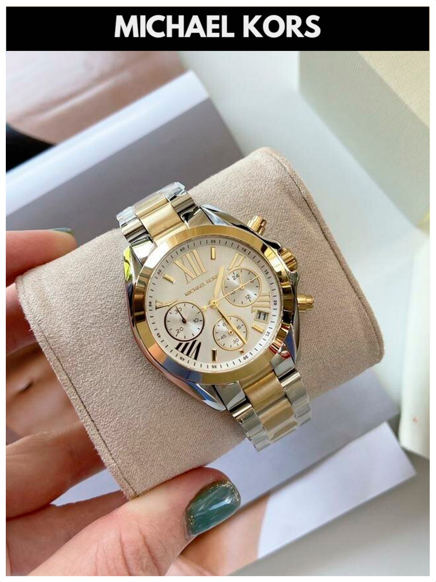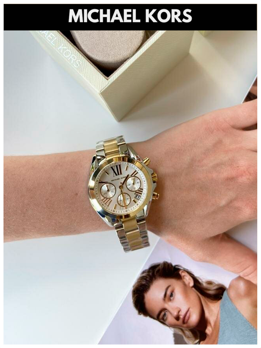 Наручные Часы Женские Michael Kors Bradshaw золотые серебристые оригинал кварцевые