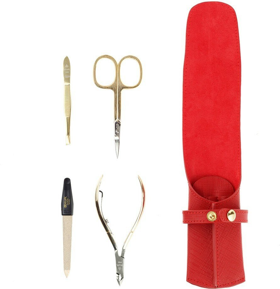 Маникюрный набор DEWAL, 4пр. Футляр: натуральная кожа, цвет красный