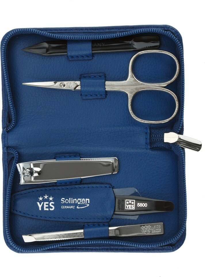 Купить Маникюрный набор YES, 5 пр. Футляр: натуральная кожа, цвет синий, 9073