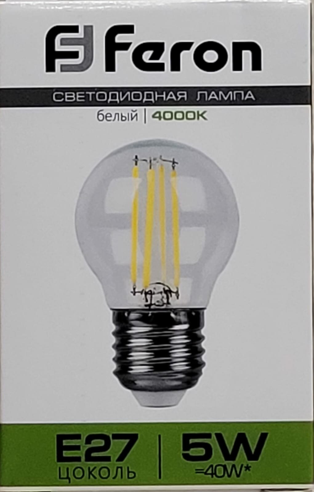 Feron филамент шар G45 E27 5W(550lm) 4000K 4K прозрачная 74x45, LB-61 25582 (арт. 620012)