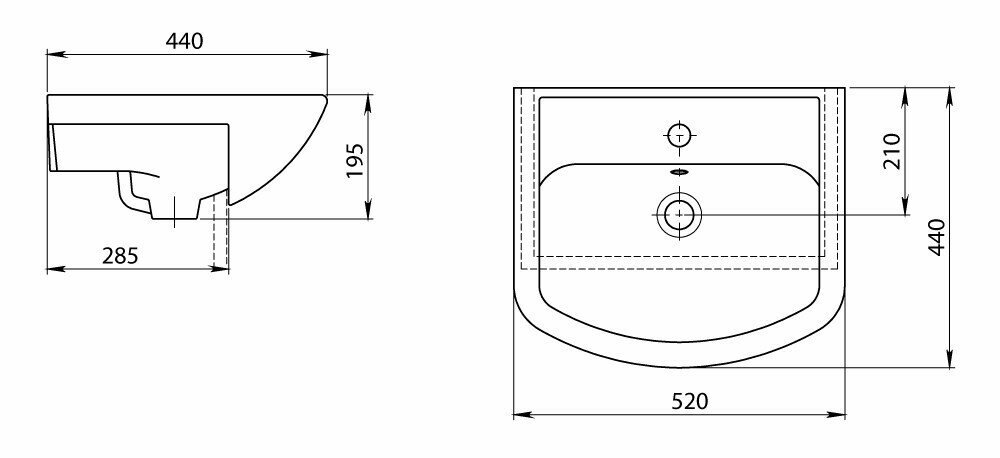| Отверстия под смеситель | 1, расположение в центре |