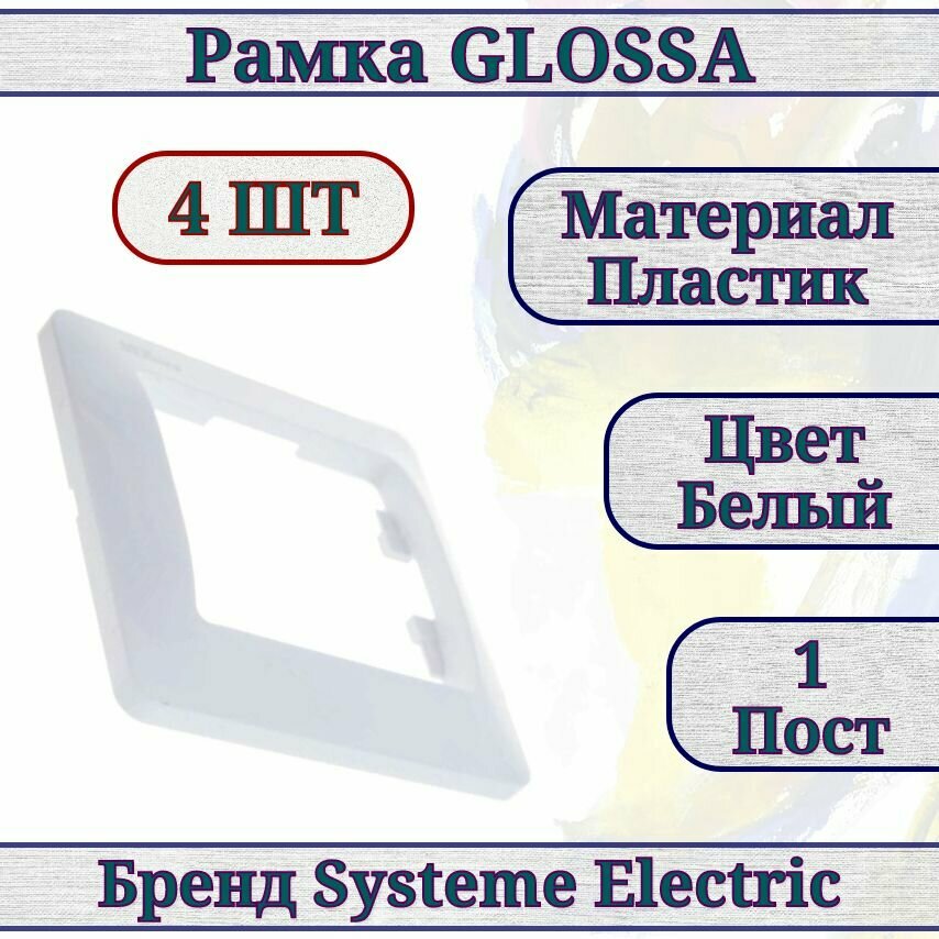 Купить Рамка белая / рамка для розетки / рамка для выключателя 4шт 1 пост Glossa Systeme Electric GSL000101