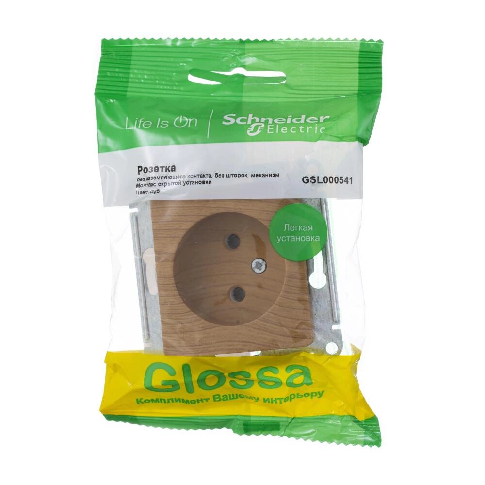 Розетка Schneider Electric Glossa, без заземления, без шторок, механизм, ДУБ, GSL000541