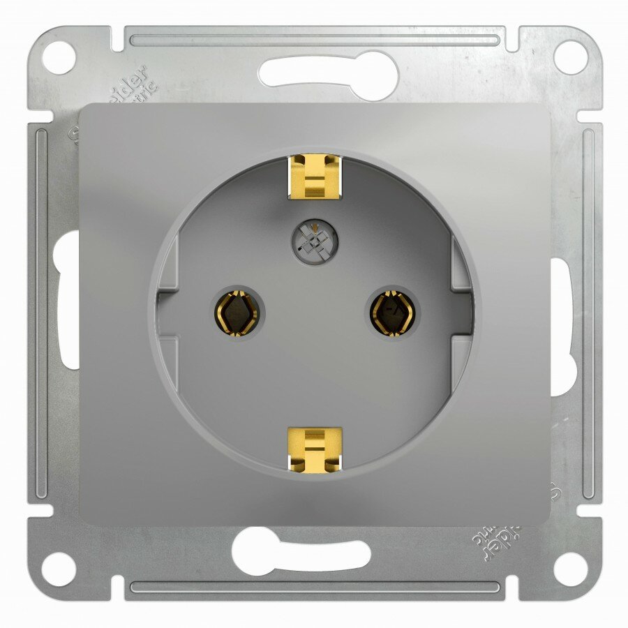 Розетка Schneider Electric Glossa GSL000343 скрытая установка алюминий с заземлением
