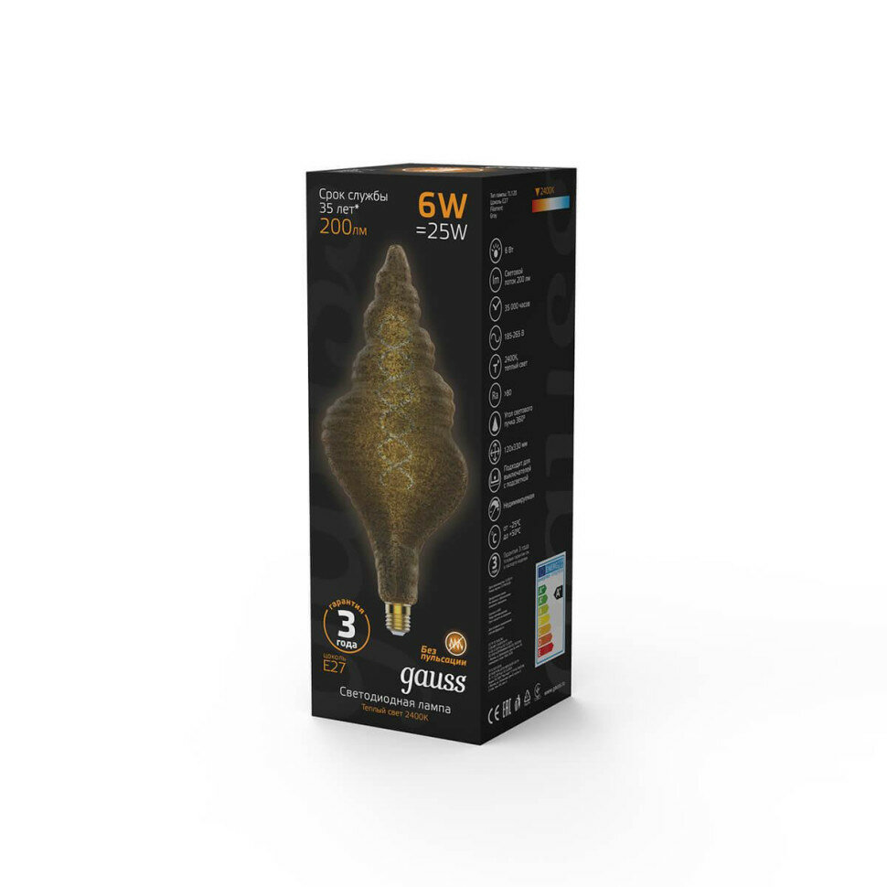 Gauss Лампа LED Vintage Filament Flexible TL120 6W E27 120х330mm 2400K 166802008