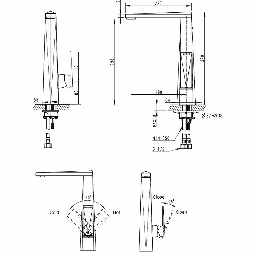 | Высота излива | 296 мм |