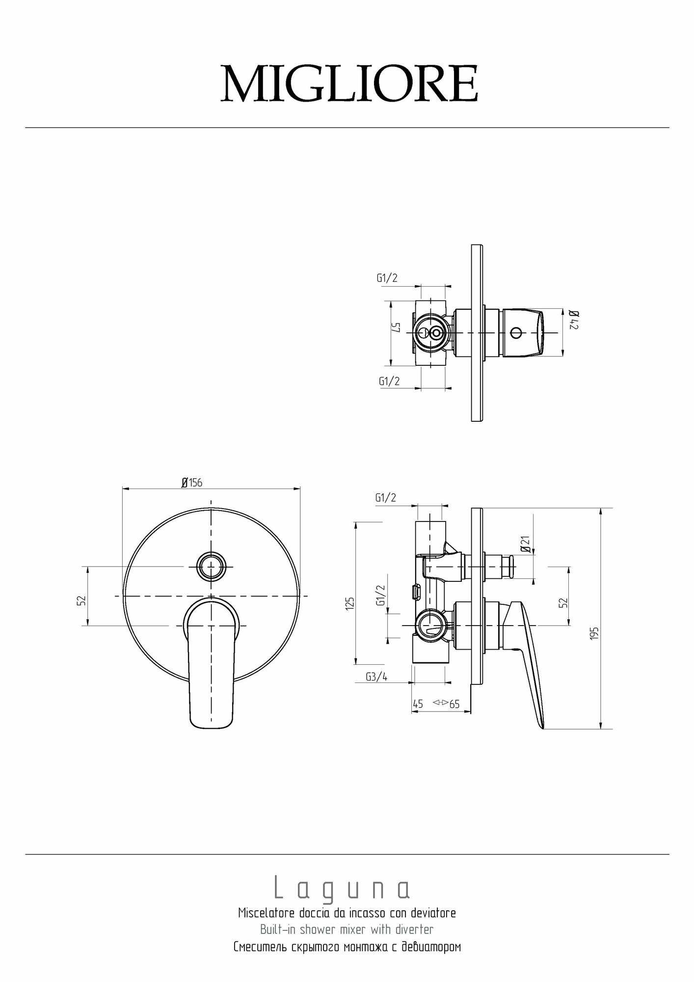 Смеситель Migliore Laguna 26086 для душа, скрытого монтажа с девиатором