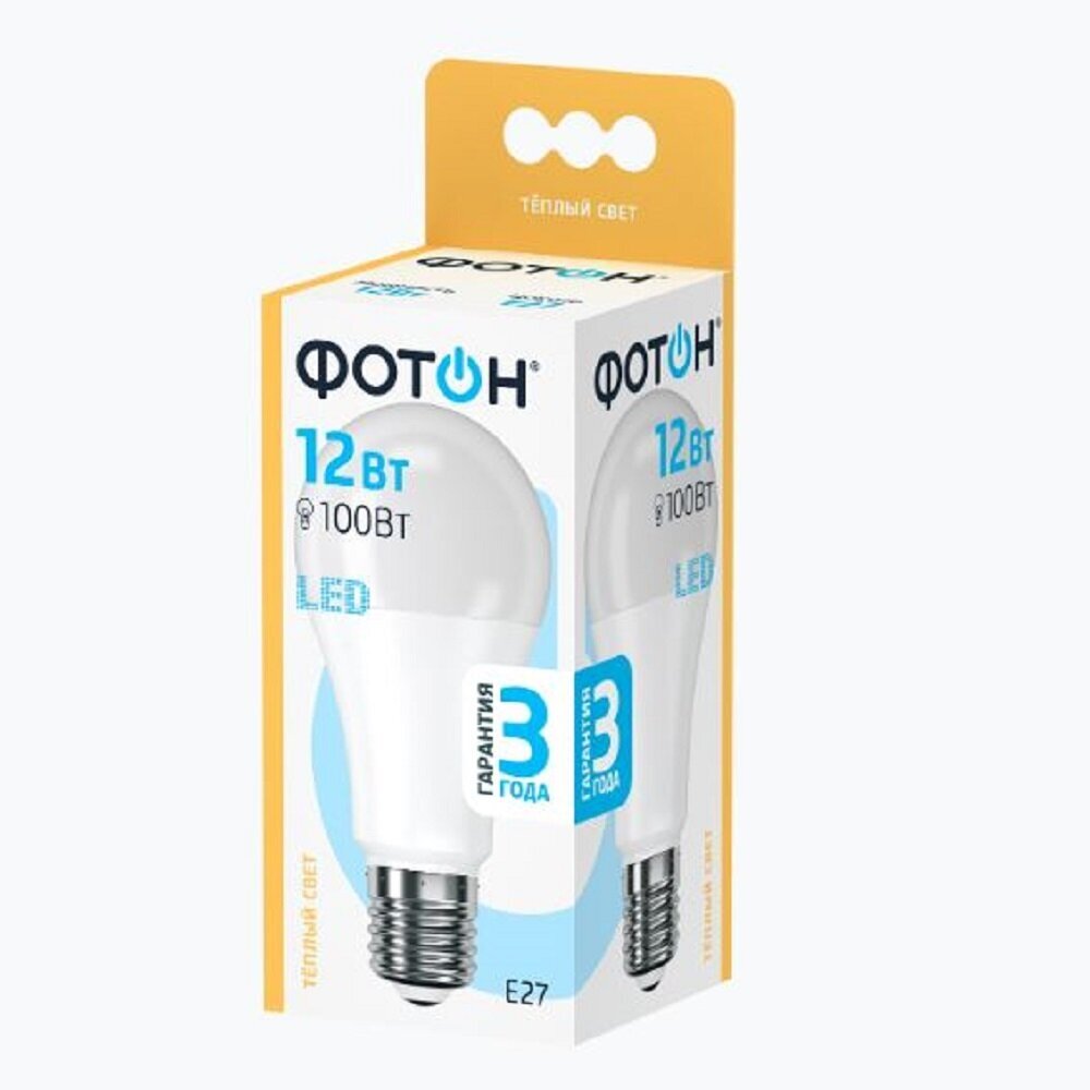 Фотон Лампа светодиодная LED A60 12W E27 3000K 22805