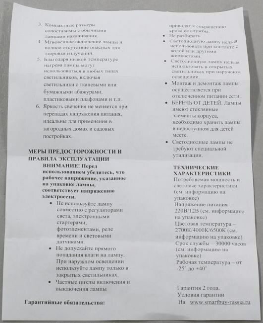 | Минусы: | из 8 купленных в ноябре 22 года лампочек, половина уже не светит(( |