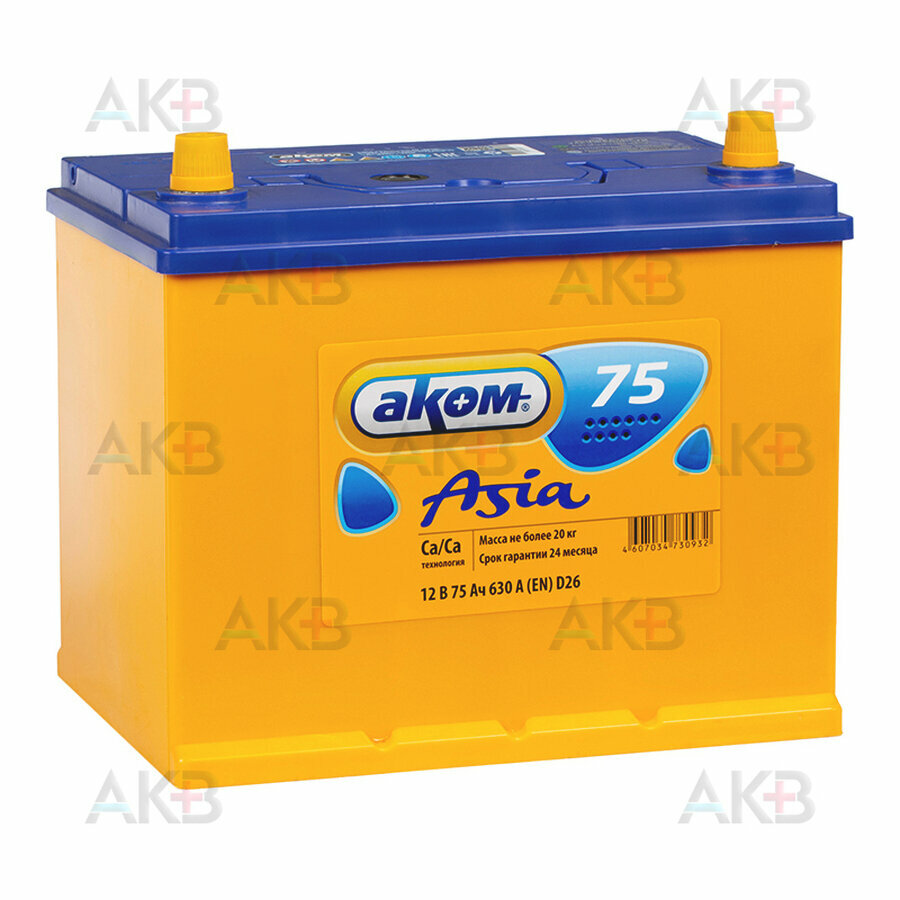 Акб 6ст-75 75ah 630a [-+] Обратная 260x173x225 18.3кг Аком Asia АКОМ арт. 4607034730949