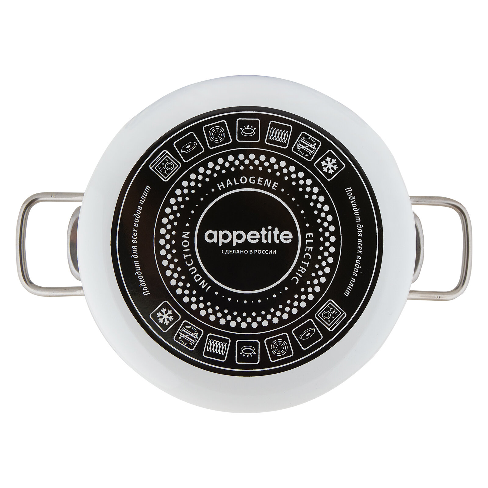 Кастрюля эмалированная 4 литра с крышкой для индукционной плиты, Appetite