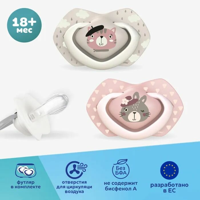 Купить Пустышка Canpol Babies Bonjour Paris симметричная с 18месяцев 2шт Розовая