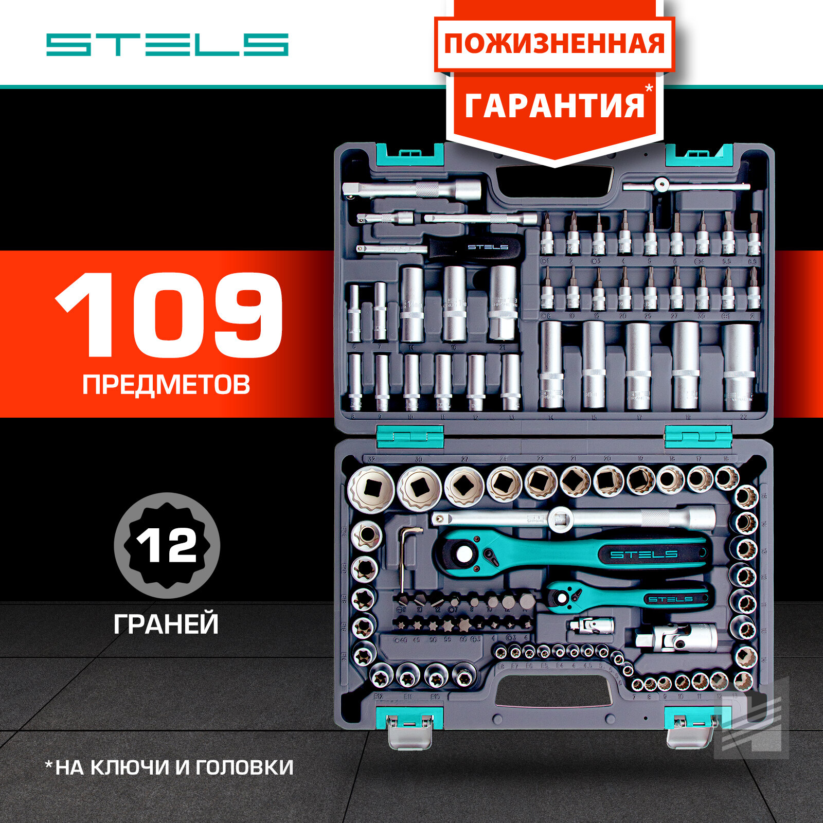 Набор инструментов 109 предметов 12 гранные головки, STELS 14122
