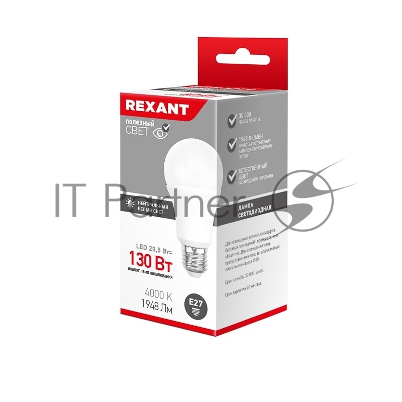 REXANT Груша A60 20,5 Вт E27 1948 лм 4000 K нейтральный свет 604-014