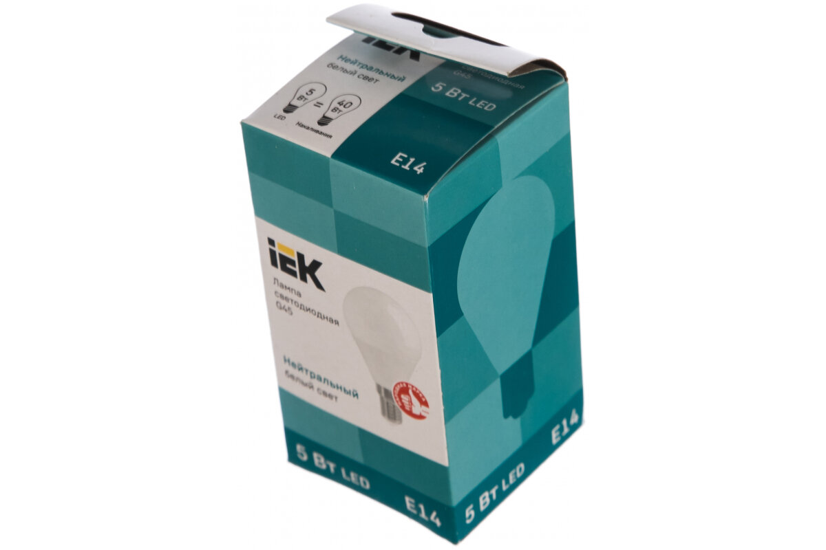 (5 шт.) Светодиодная лампочка IEK шар G45 E14 5W(450lm) 4000K 4K 78x45 матов. ECO LLE-G45-5-230-40-E14 Нейтральный белый. Цоколь E14