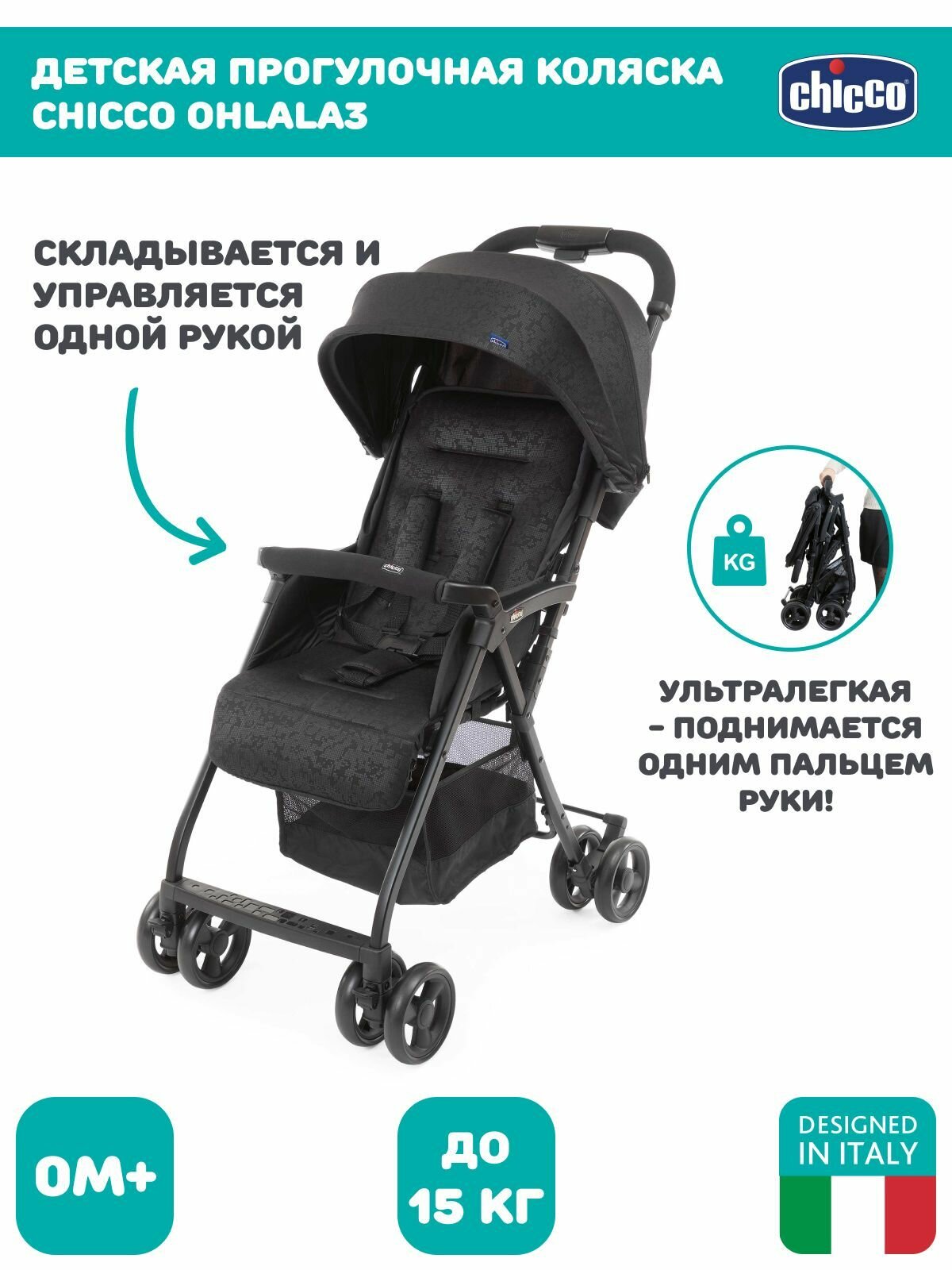 Прогулочная коляска Chicco Ohlala 3, расцветка Jet Black . интересное: