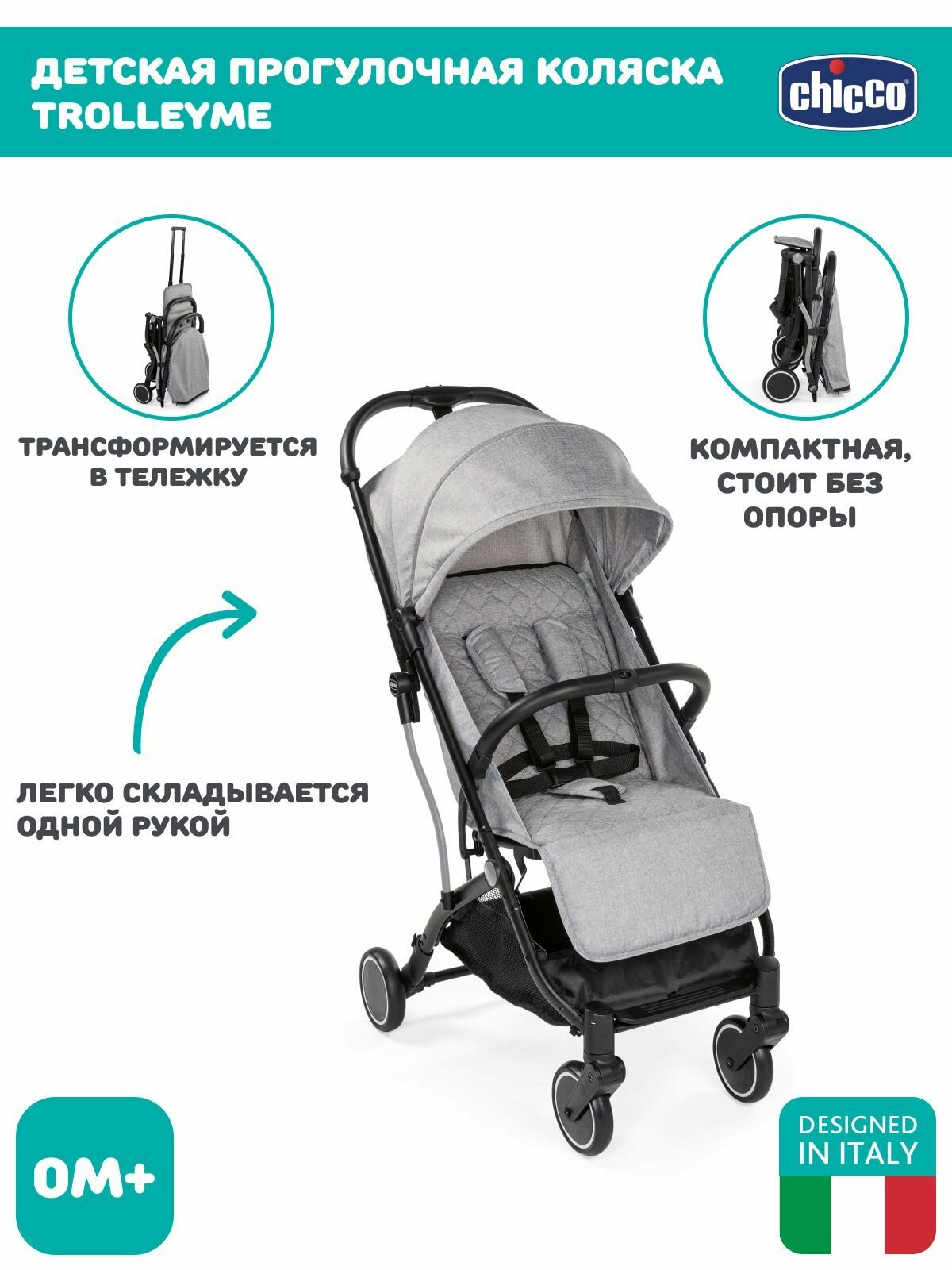 Коляска CHICCO TROLLEYME LIGHT GREY 0 м+