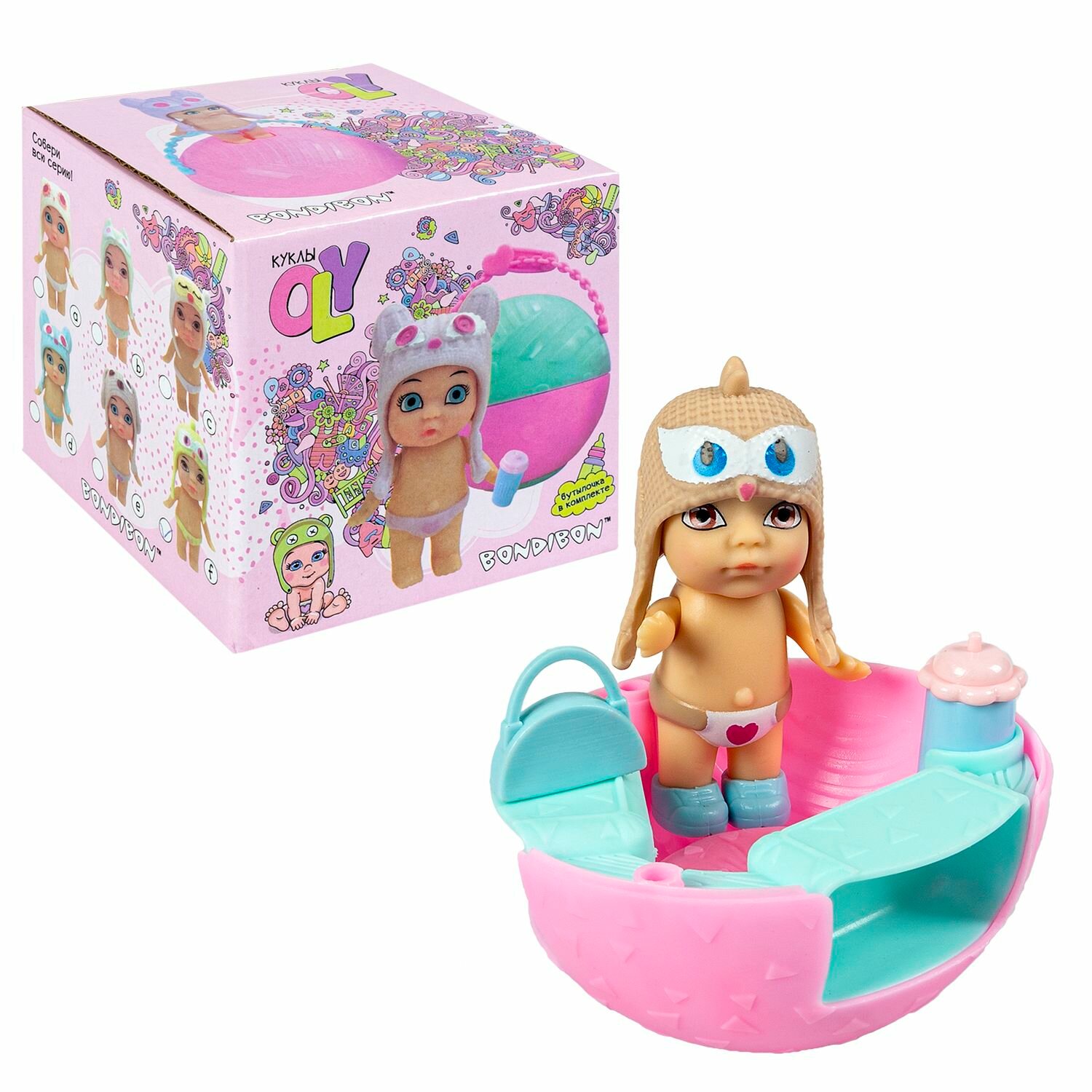 Набор игровой Bondibon куколка OLY в шапочке-ушанке с животным и аксессуарами в шаре, ВОХ 10х10х10