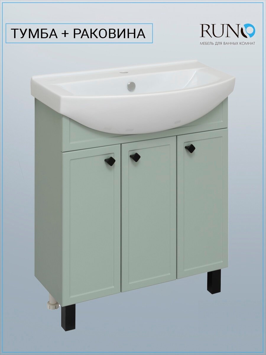 Тумба с раковиной / Runo / Римини 75 / мята / с умывальником Best 75
