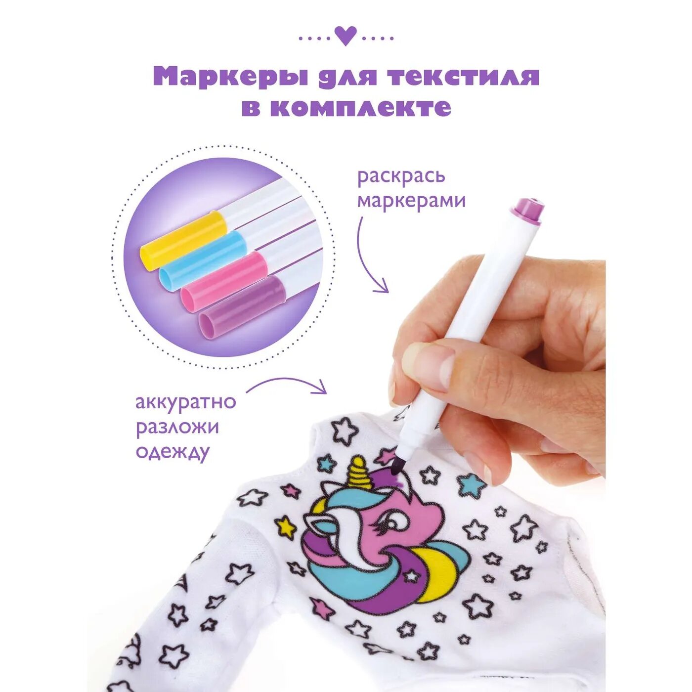 | Комплектация | кукла 1 шт., фломастеры 4 шт., дополнительная одежда (свитшот 1 шт., юбка 1 шт.) |