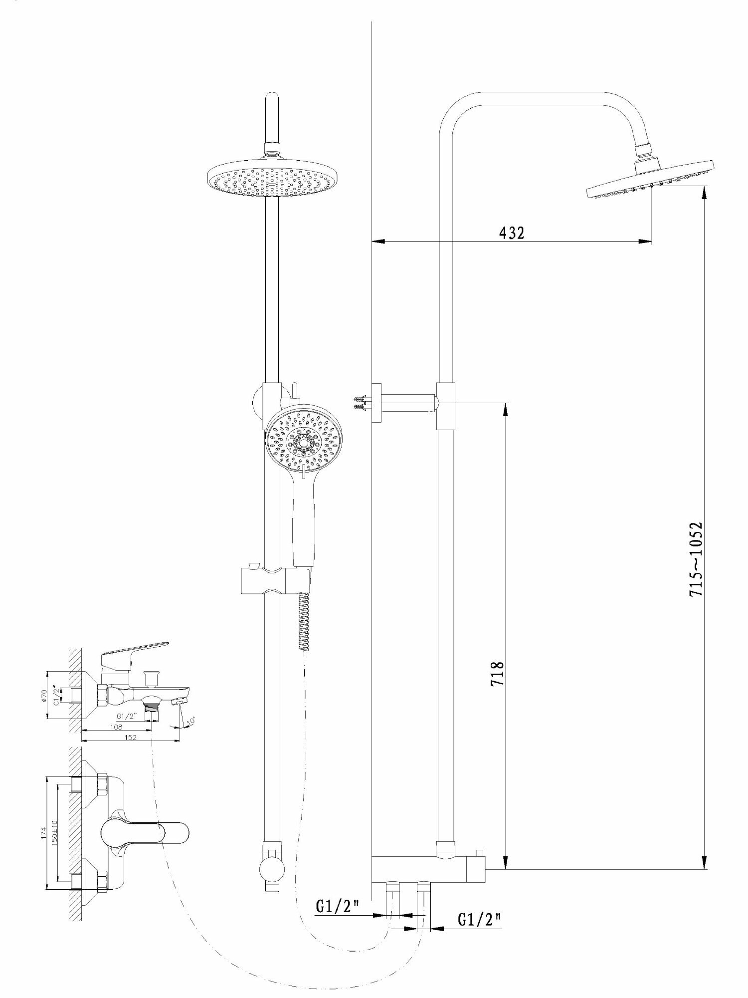 | Дополнительная информация | высота стойки для душа: 1182 мм |
