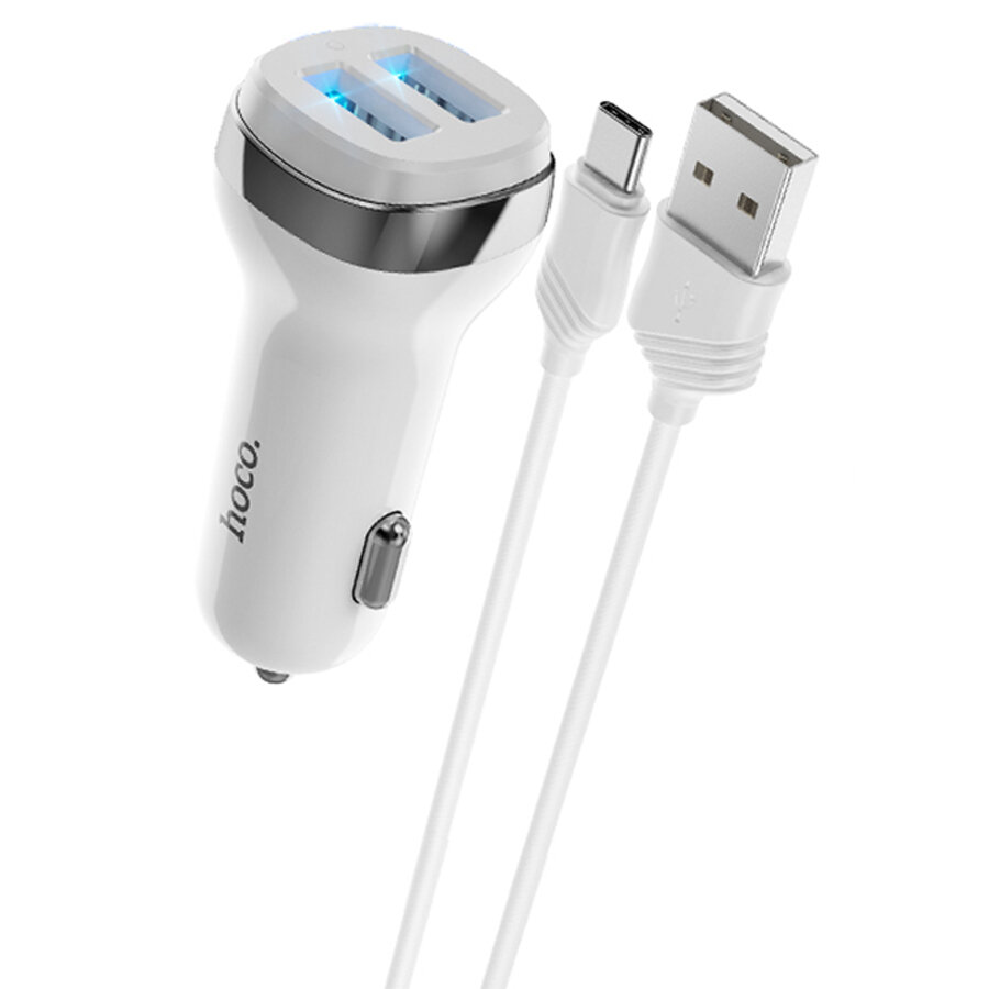 Купить Автомобильное зарядное устройство HOCO Z40 Superior, 2xUSB с Кабелем USB - Type-C, 2.4A, белый