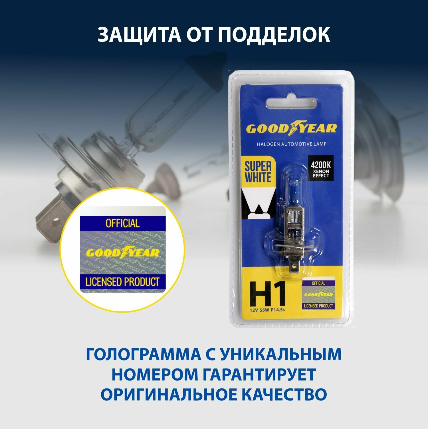 Лампа 12 В H4 60/55 Вт Super White галогенная блистер Goodyear GOODYEAR GY014127 | цена за 1 шт
