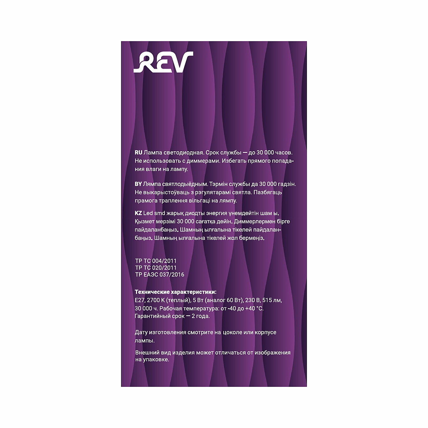 Лампа светодиодная REV 32422 5, E27, A60, 5 Вт, 2700 К