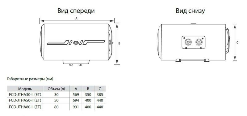Электрический горизонтальный водонагреватель FCD-JTHA50-III(ET) объем 50 л